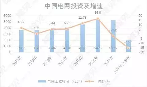 “十二五”以来,我国电网投资总体都保持增长,2017年电网投资开始出现首次下降。国家能源局的最新数据显示,2018年上半年,我国电网工程投资金额为2036亿元,同比大幅下滑15.1%。