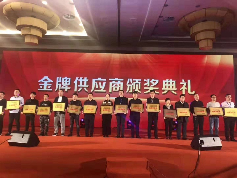 会议过后后,是众多钢企,钢贸商期待的颁奖环节,泰安市信桥金属有限公司再获殊荣,荣获兰格网“2018年度全国百家金牌供应商称号”。颁奖现场热闹非凡,参会人员倍感荣幸。
