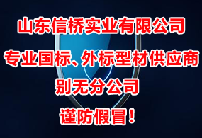 山东信桥实业有限公司成立于1994年8月8日,是解决业内高端国标、外标型材需求的现货服务商,为型材的升级换代提供可能。公司一直秉承“诚信为本,客户至上”和“专人、专业、专心,做精、做细、做透”的经营理念,认真贯彻落实“经营多元化、管理现代化、信桥品牌化、员工知识化”四大战略,为广大客户提供优质的产品和服务;