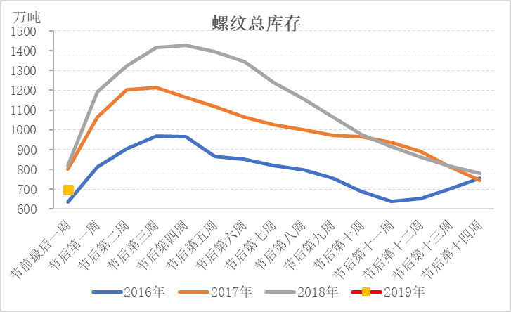 库存低于去年同期,市场有望出现开门红行情。根据Mysteel库存统计数据,2019年春节前最后一周五大品种库存虽高于2016年,但低于2017、2018年,尤其是螺纹钢,总库存低于2018年同期122万吨。在产量高于去年同期的情况下,需求是好于去年同期的。市场对节后需求依旧抱有较大期待。