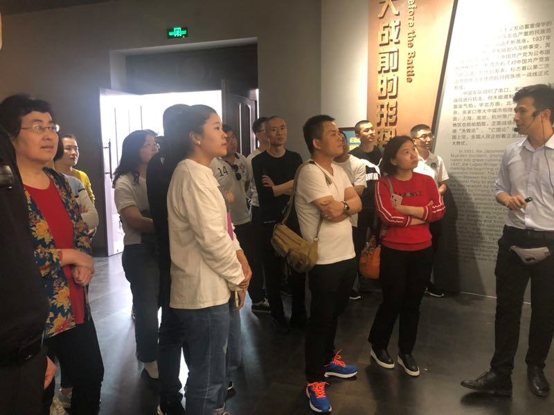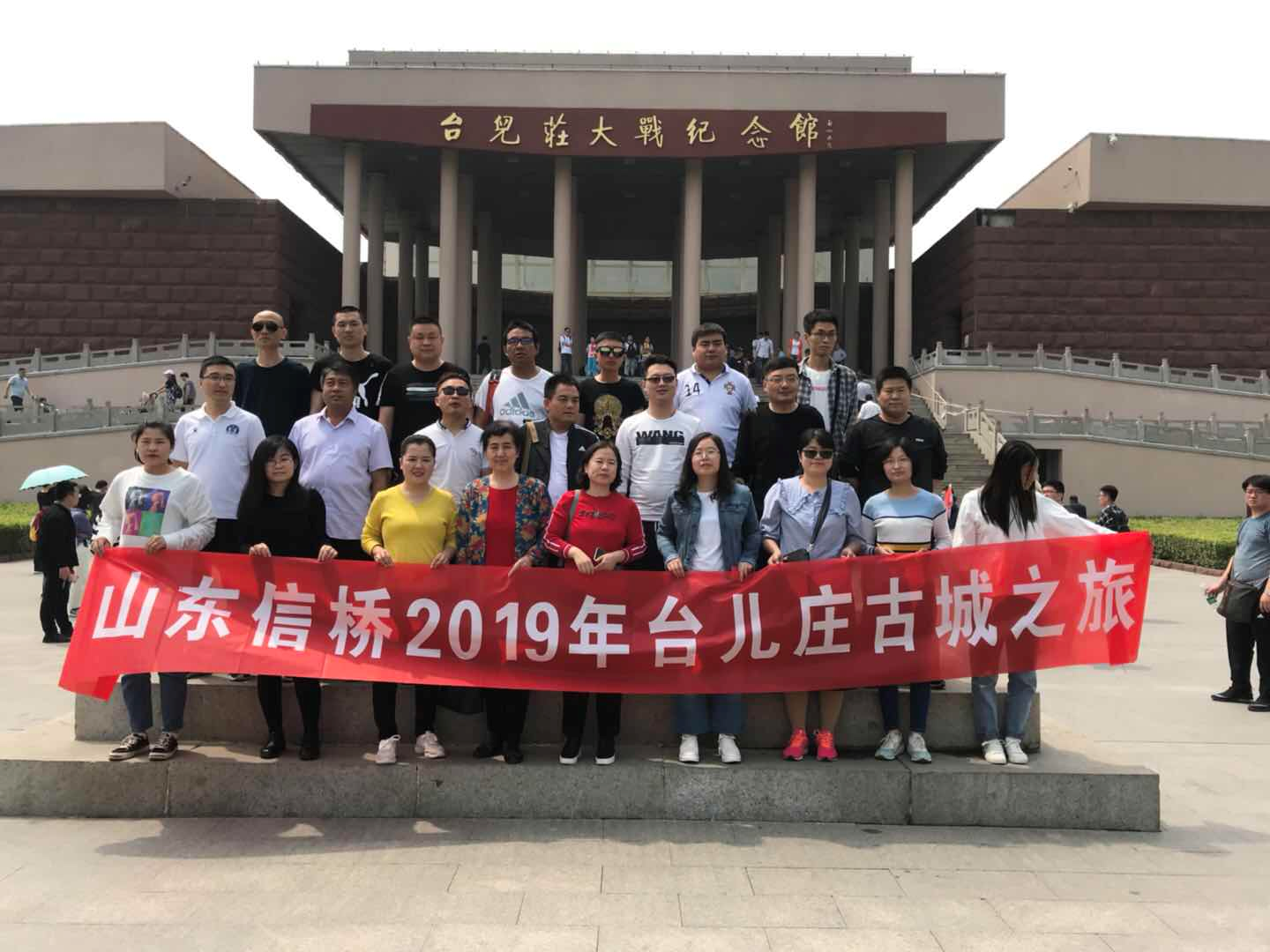 2019.5.11早大家在指定地点集合乘车赴枣庄,抵达后参观【台儿庄大战纪念馆】,在纪念馆前拍照留念后沿38级台阶拾级而上,依次步入展览馆的3个展厅和全景画馆,600多件珍贵文物史料和集声、光、塑、形及气势恢弘的画面于一体的巨幅全景画,再现那一段饱含光与泪的历史,引人深思。
