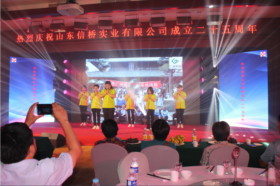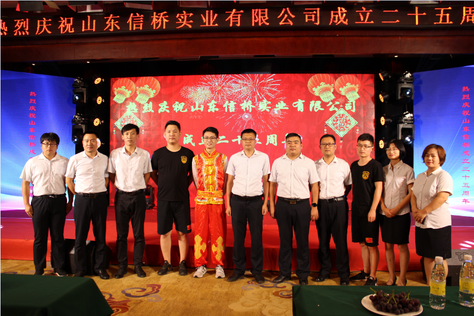 岁月如歌,风霜如画,二十五年弹指一挥间,山东信桥实业有限公司(以下简称山东信桥)迎来了二十五周年的生日。二十五年来,信桥人在激烈的市场竞争中奋力拼搏、砥砺前行,接受了市场风风雨雨的洗礼,取得了累累硕果。为了庆祝这一特殊的日子,2019年8月8日,以“感恩同行,共赢未来”为主题的山东信桥二十五周年庆典活动在帝苑酒店举行。