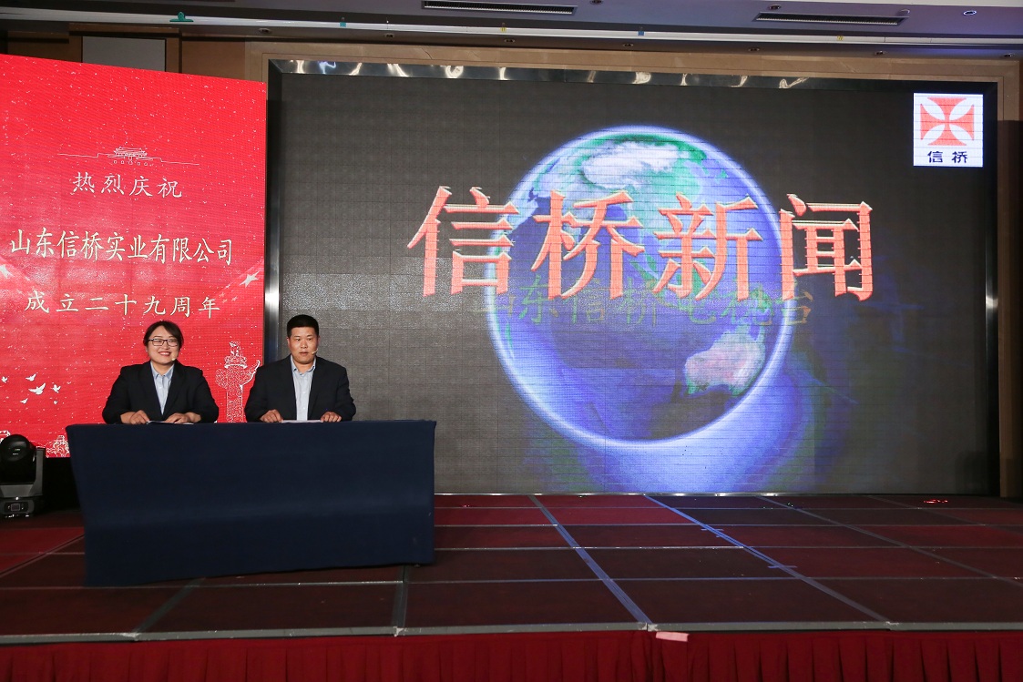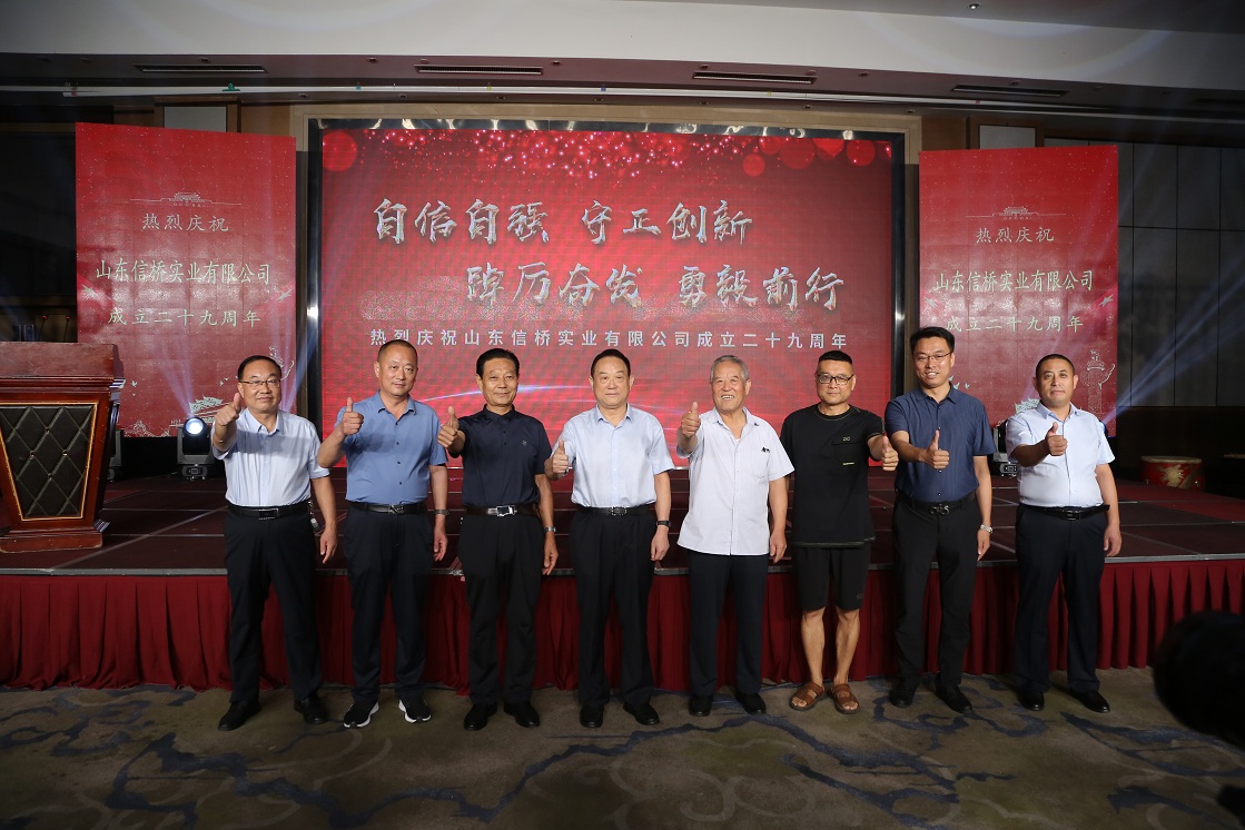 岁月如歌,风霜如画,二十九年弹指一挥间,山东信桥实业有限公司(以下简称山东信桥)迎来了二十九周岁的生日。二十九年来,信桥人在激烈的市场竞争中奋力拼搏、砥砺前行,接受了市场风风雨雨的洗礼,取得了累累硕果。为了庆祝这一特殊的日子,202388日,以“激流勇进,安定团结谋发展 披荆斩棘,开拓创新向未来”为主题的山东信桥二十九周年庆典活动在宝盛大酒店举行。