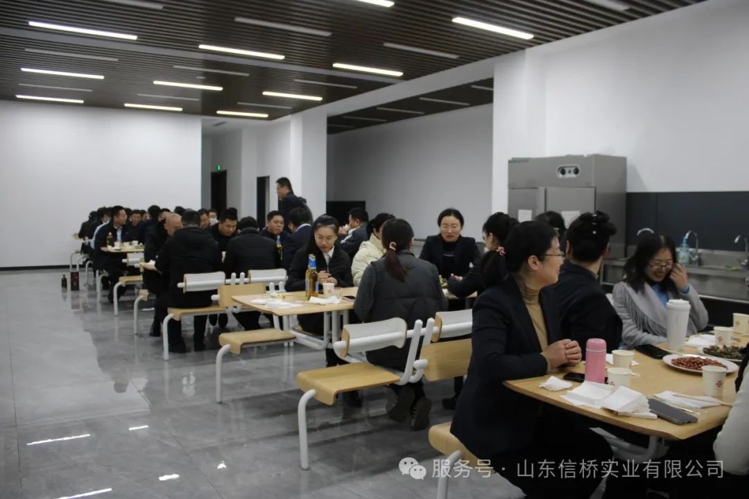 会议结束后,所有的信桥员工在公司餐厅聚餐进行年会庆祝,现场气氛热烈欢快。