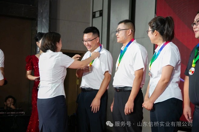 信桥公司为员工运动会中的篮球组和乒乓球比赛的冠、亚军颁发了奖牌和奖品。